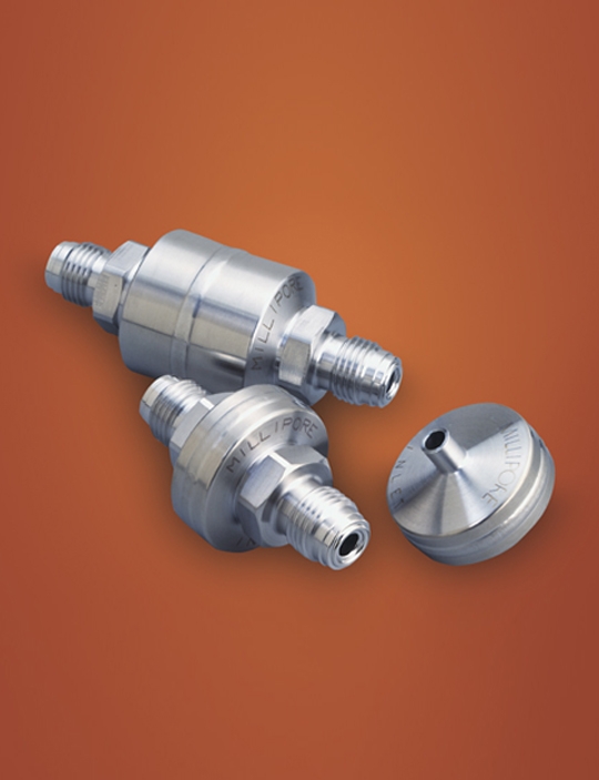 Filter element: Patented, sintered nickel membrane filter. Housing: Electropolished F20 stainless steel housing Surface finish interior: <=5 μin Ra Helium leak rating: Qualified 2`10-10 atm-cc/sec. Tested 1`10-9 atm-cc/sec. |