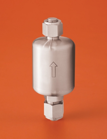 Filter element: Patented, sintered nickel membrane filter. Housing: Electropolished VAR 316L stainless steel housing Surface finish interior: <=5 μin Ra Helium leak rating: Qualified 2`10-10 atm-cc/sec. Tested 1`10-9 atm-cc/sec. Total flow area: 140.0 cm2 |