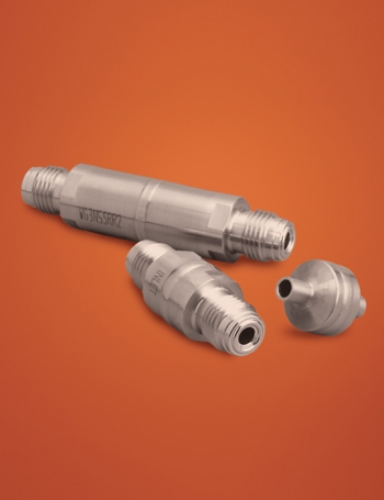 Filter element: Patented, sintered nickel membrane filter. Housing: Electropolished F20 stainless steel housing Surface finish interior: <=5 μin Ra Helium leak rating: Qualified 2`10-10 atm-cc/sec. Tested 1`10-9 atm-cc/sec. |