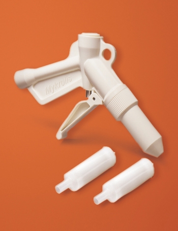 Filter gun body: White nylon-molded body Trigger: White nylon-molded body Valve system: Stainless steel 304 O-ring: EPDM Tubing: Polyurethane Cartridge filter: Polypropylene hydrophobic Durapore® PVDF membrane supported by a molded polypropylene structure Filter: Durapore® PVDF Shell: Polypropylene Support: Polypropylene Weight: Approx. 150 g (5.29 oz.) |
