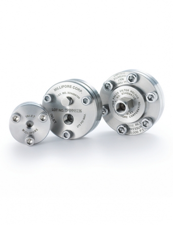 For filtration of gases or liquids at inlet pressures of 20 to 700 bar. Differential pressure depends on filter type used. All filter holders may be autoclaved. Filter holder XX44 047 00 is equipped with a back-pressure support screen. It may be autoclaved with filter in-place, if PTFE-coated support screens, XX44 047 02 and XX44 047 04, are used. Holder XX45 047 00 may be equipped with an upstream filter support screen, XX45 047 04, for back-pressure