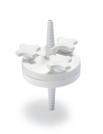 Ultraclean liquids or gases in-line by pressure filtration. Open for filter change without disturbing attached plumbing.