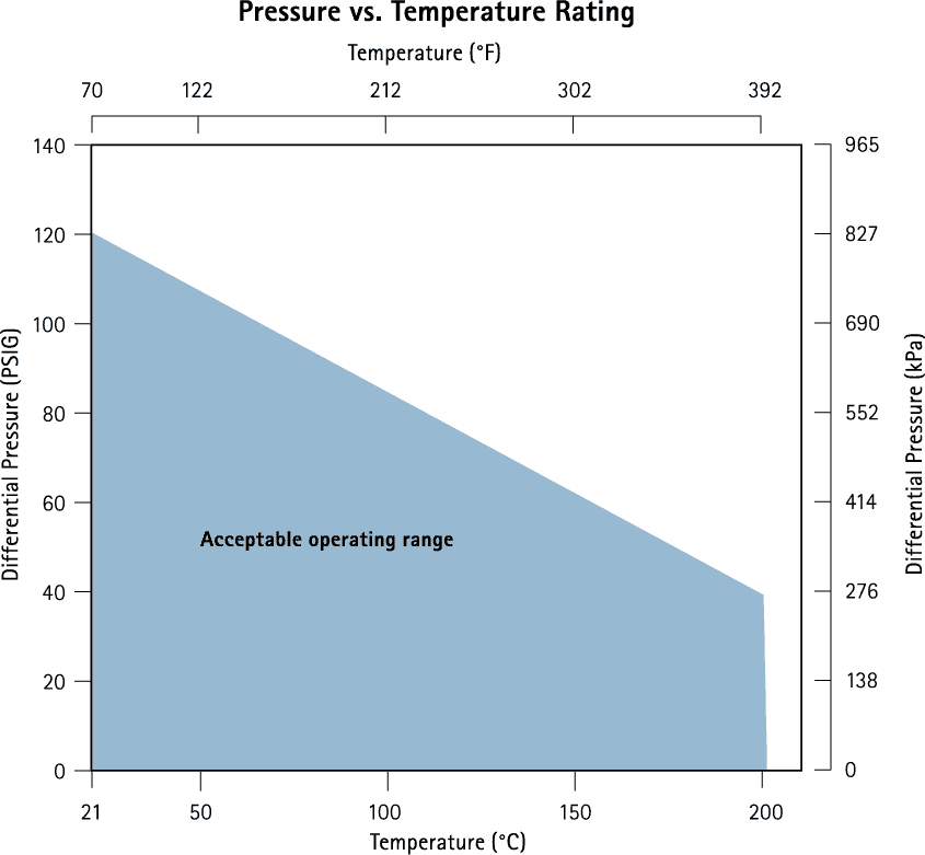 | 攝氏200度(約華氏392度) | 額定電壓為276 kPa (40 PSIG) | ||