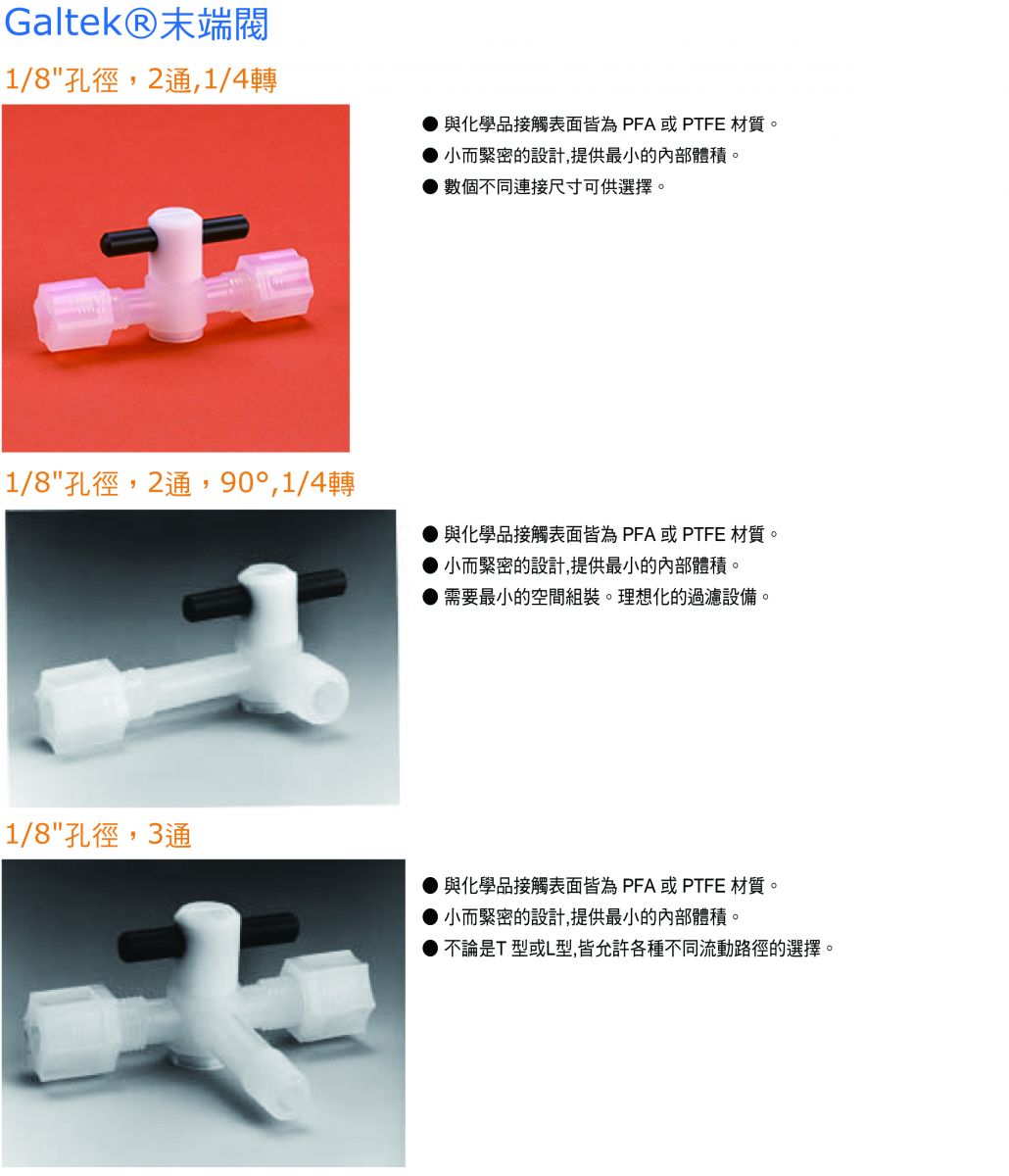 Galtek®1/8"孔徑末端閥