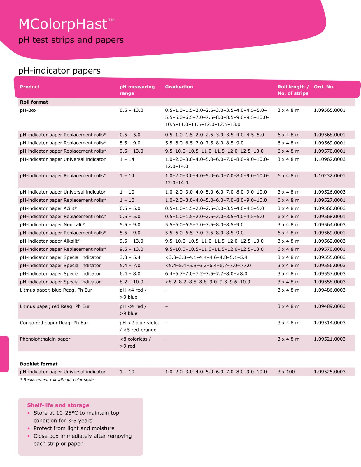 MColorpHast™ pH 試紙條及試紙