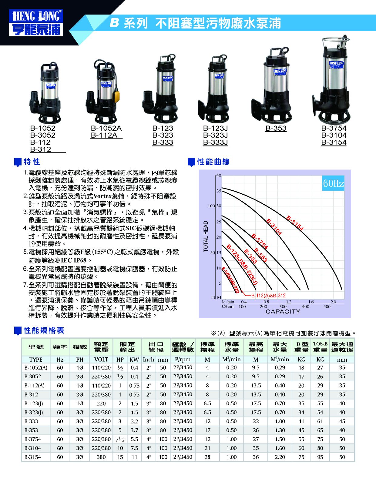 B 系列 不阻塞型污物廢水泵浦