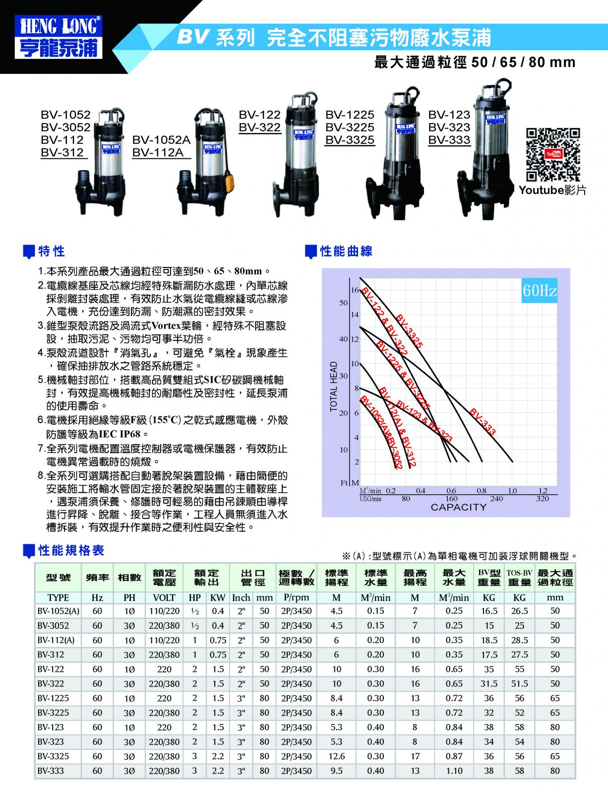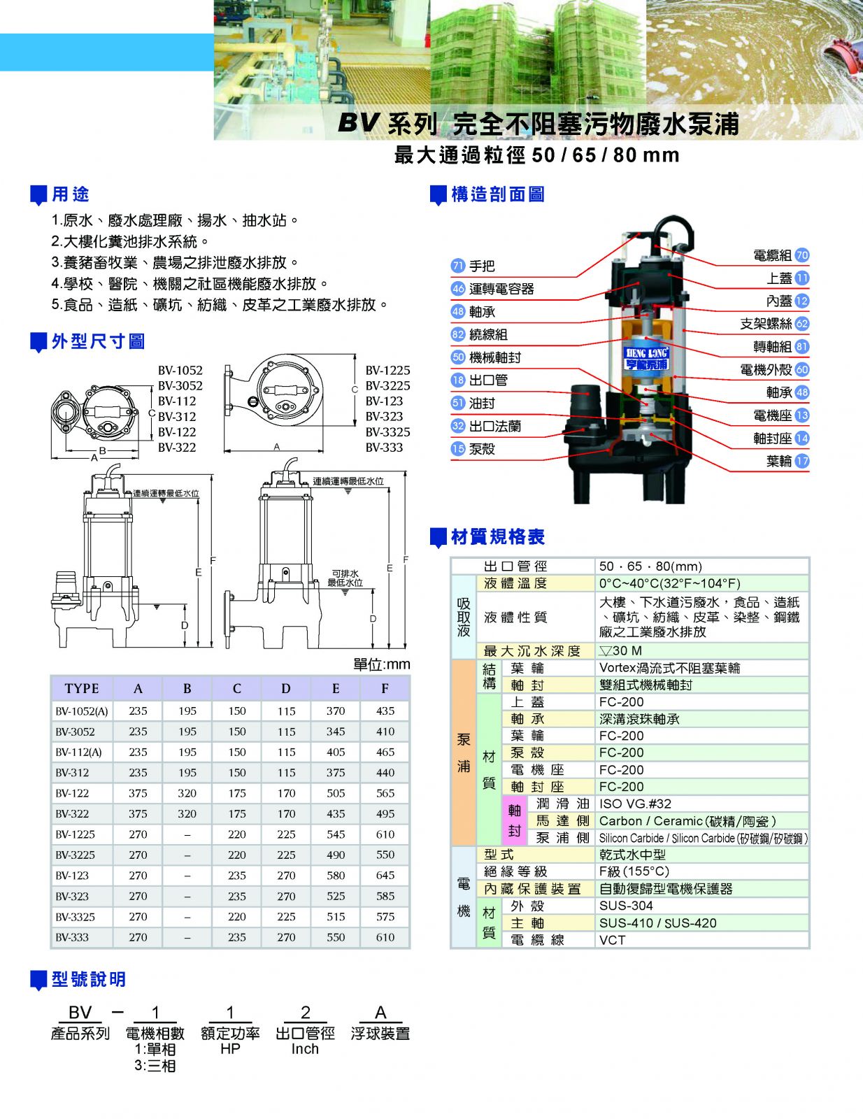 BV 系列 完全不阻塞污物廢水泵浦