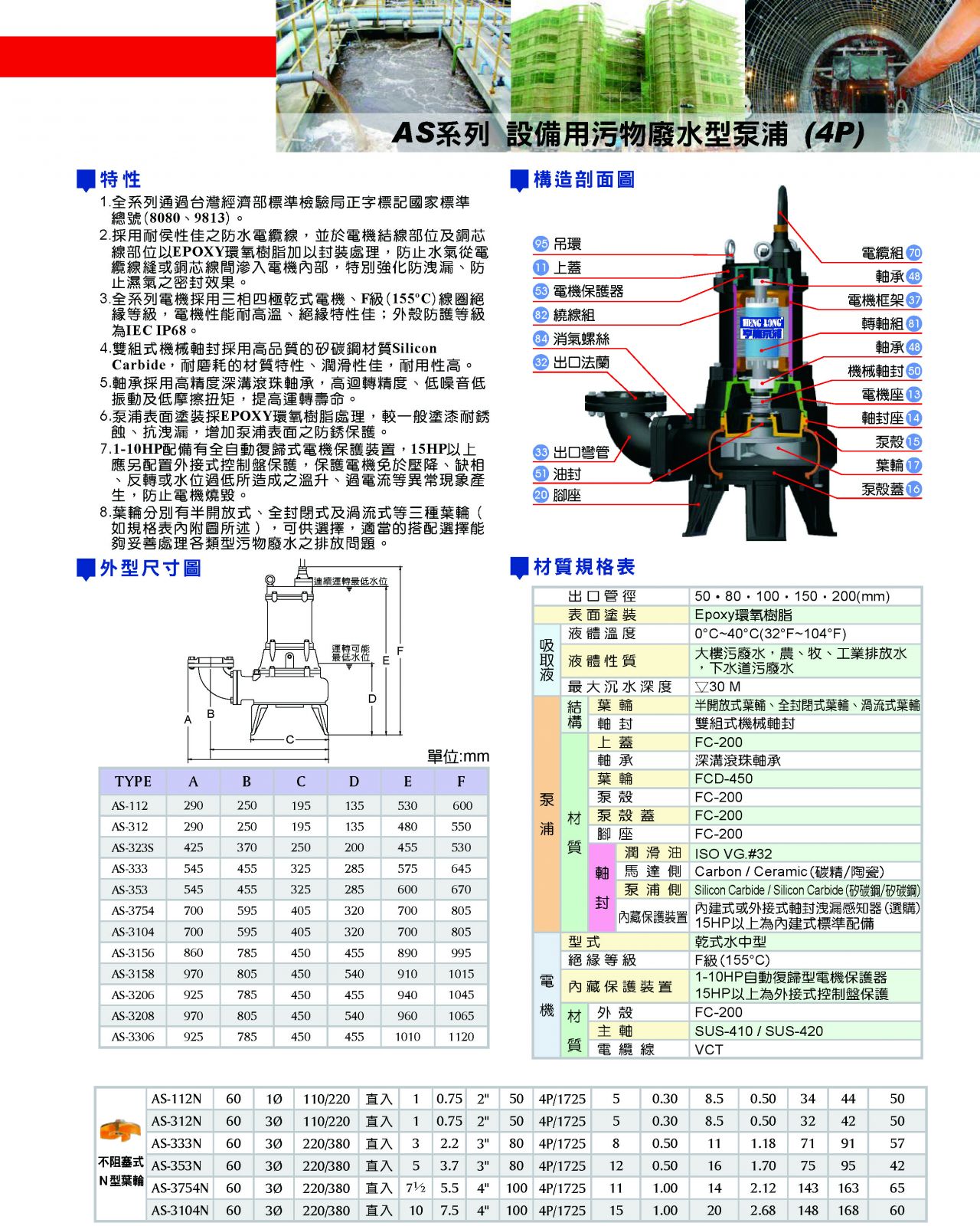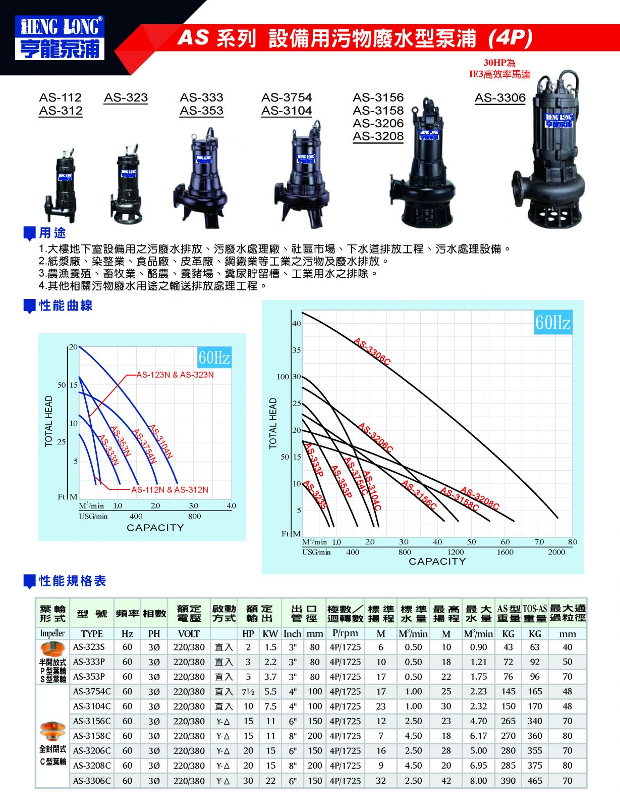 AS 系列 設備用污物廢水型泵浦 (4P)