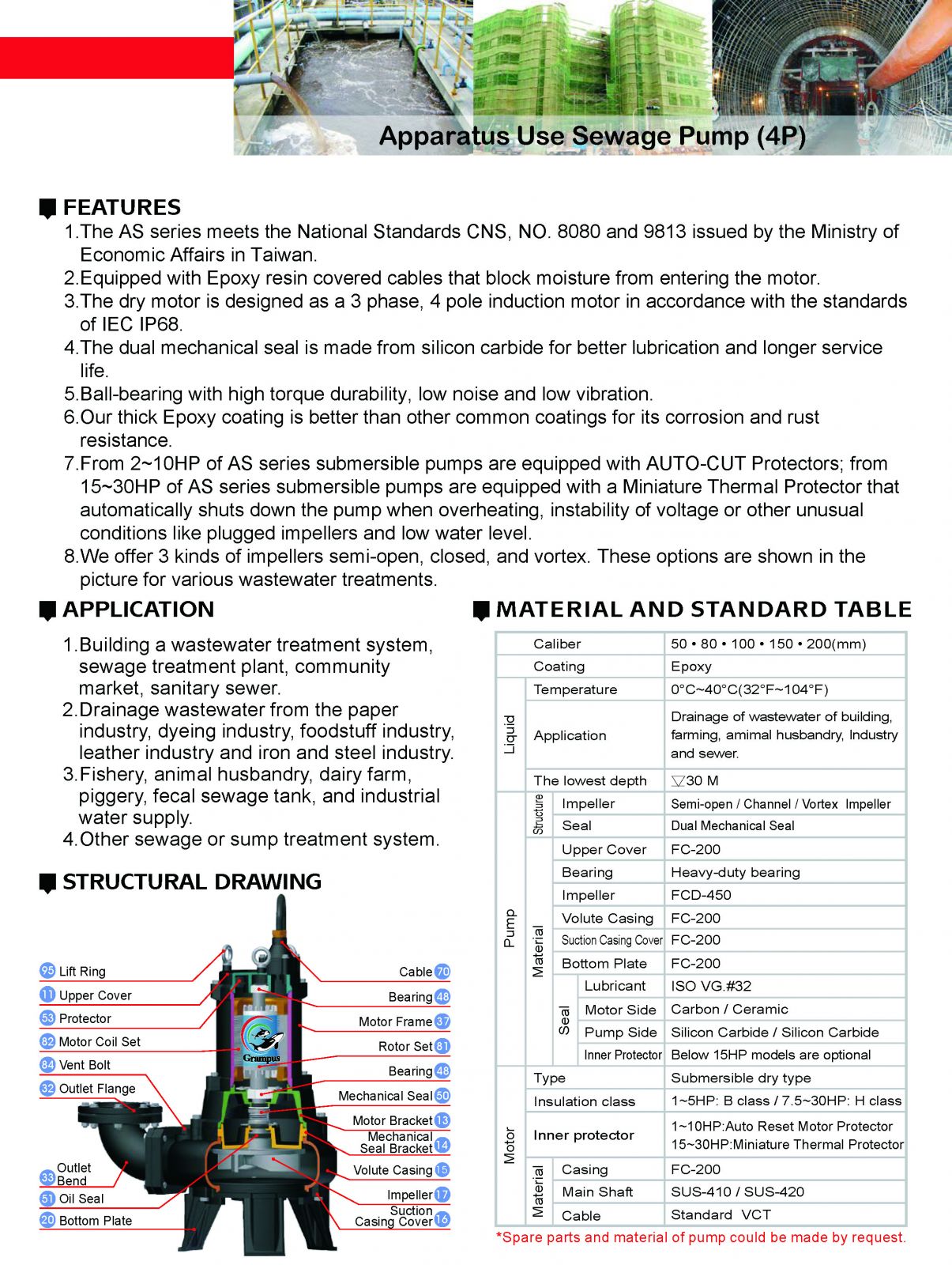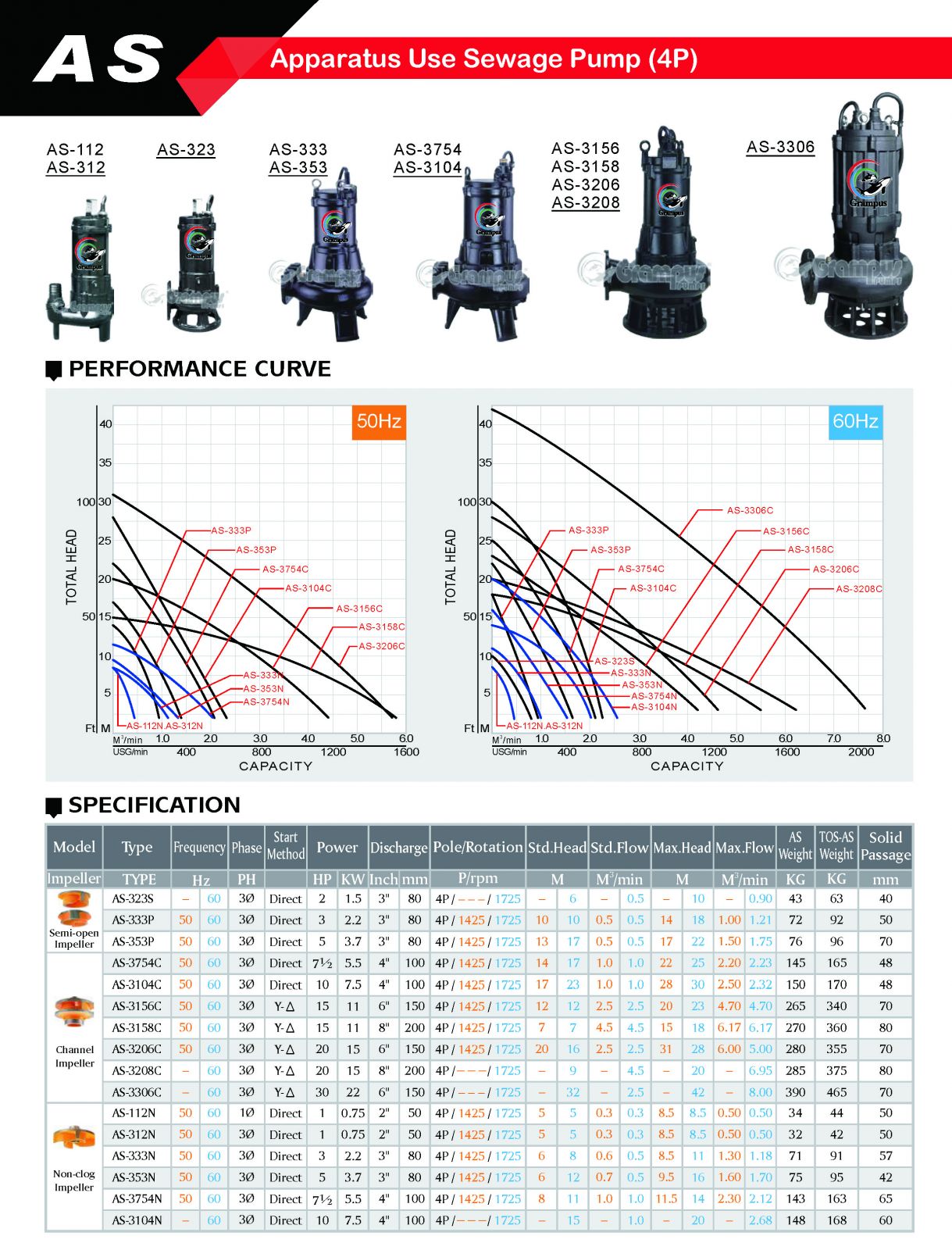 AS series Apparatus Use Sewage Pump (4P)