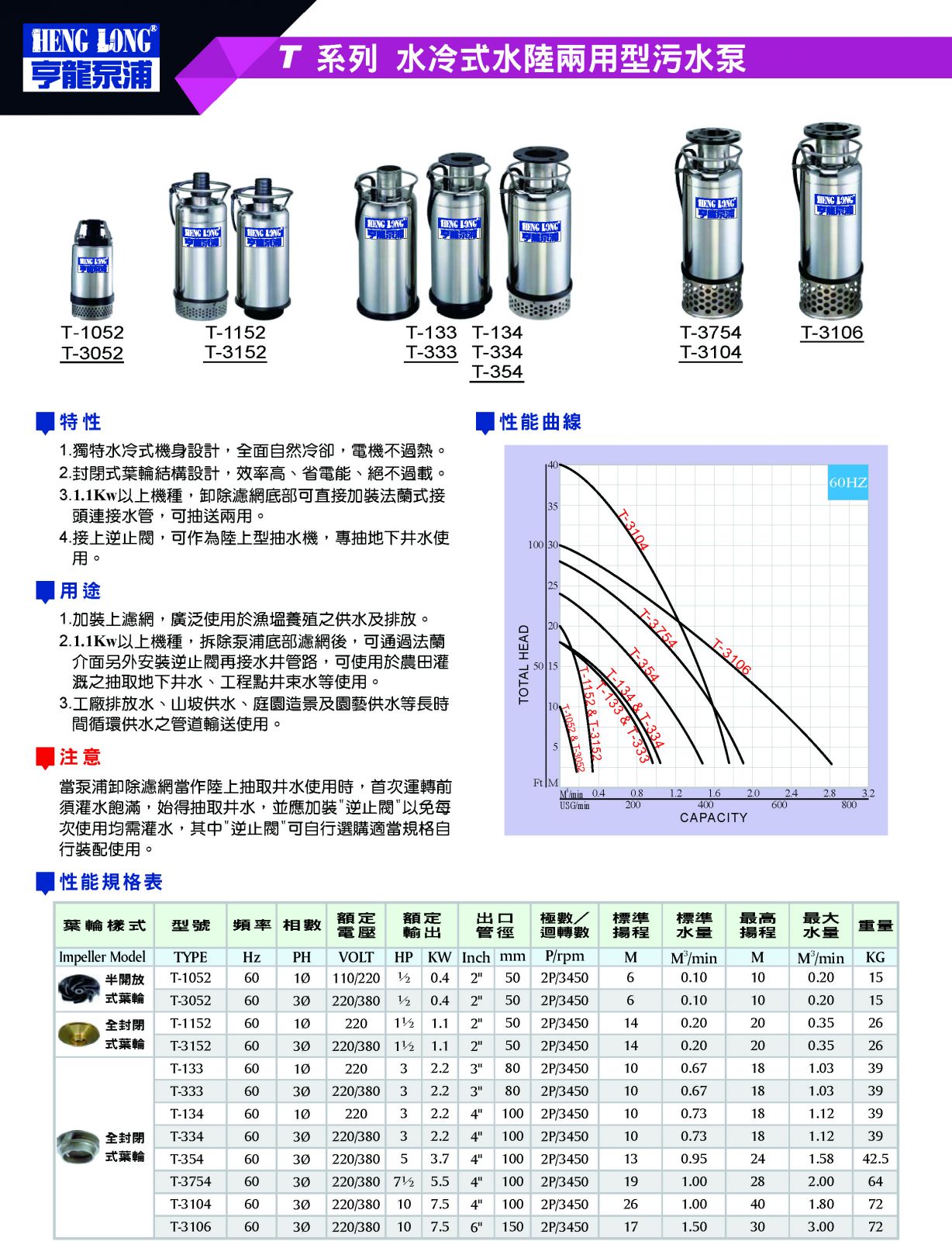 T 系列 水冷式水陸兩用型污水泵