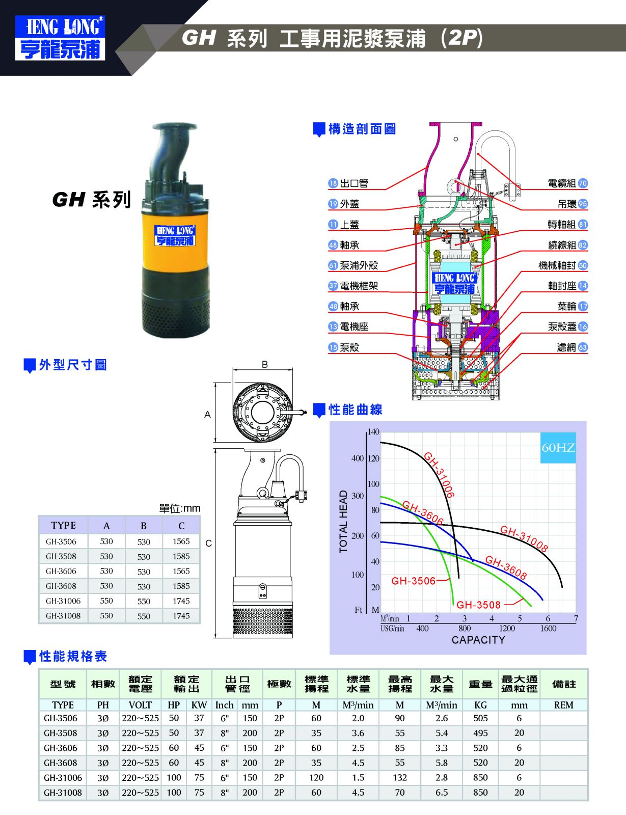 GH 系列 工事用泥漿泵浦 (2P)