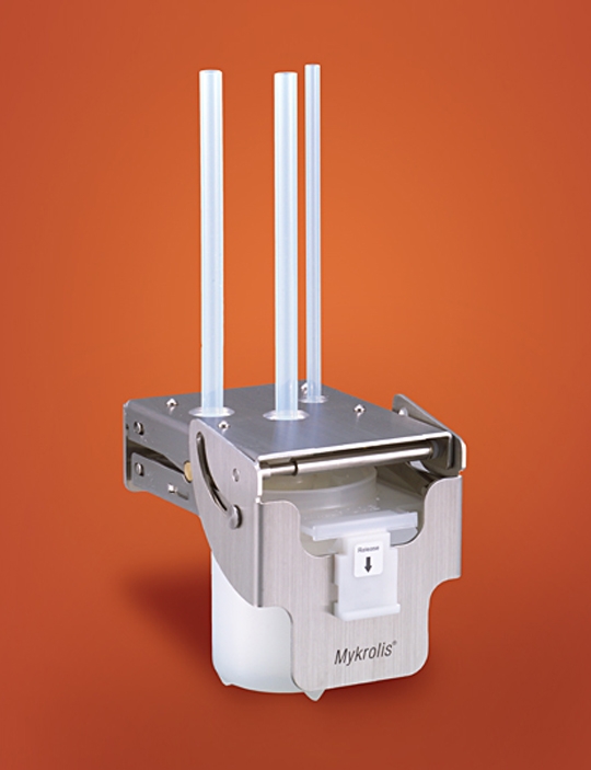 Tubes and wetted surfaces: PFA Nonwetted components: Stainless Steel Release tab: POM O-ring: Kalrez® pefluoroelastomer, EPDM |